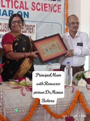 The Department of Political Science was founded in 1981. Dr Mrs Biswamohini Mangaraj was the first faculty member of the Dept. Political Science was taught as Pass and Elective subject in graduation level and as Optional subject at intermediate level. Honours teaching of the subject started in 2018 with 16 seats.