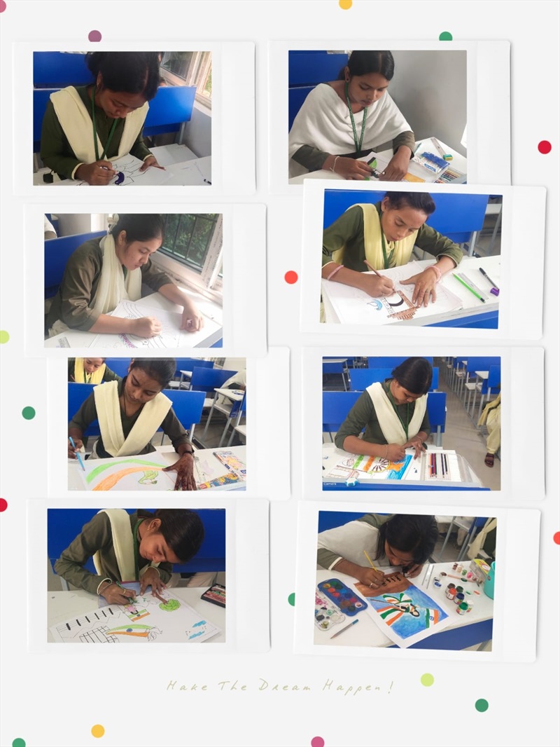 Participants during the painting competition on the theme "Vande Mataram @150 years and Indian Freedom Struggle."
