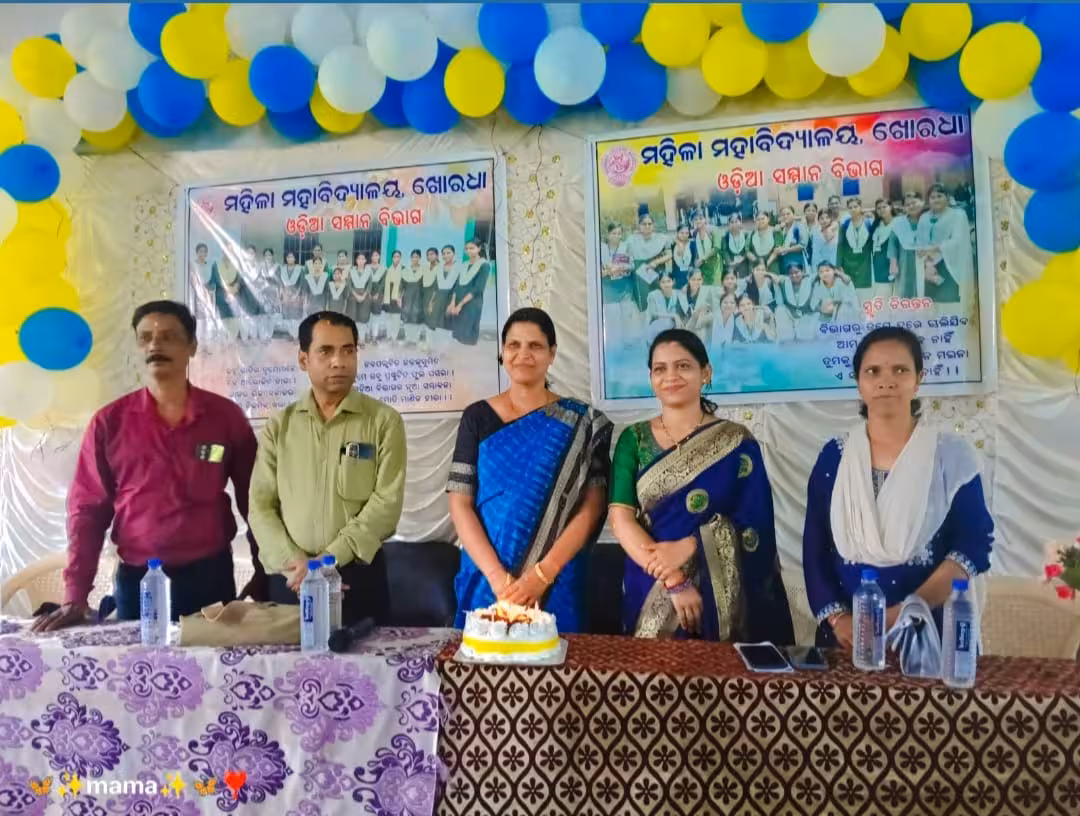 ୧୯୮୩ ମସିହାରେ ମହିଳା ମହାବିଦ୍ୟାଳୟ, ଖୋର୍ଦ୍ଧାରେ ଓଡ଼ିଆ ବିଭାଗର ଆରମ୍ଭ ହୋଇଥିଲା | ଏହି ସମୟରେ ବିଭାଗୀୟ ମୁଖ୍ୟା ଶ୍ରୀମତୀ ରଶ୍ମି ରାଉଳ ବିଭାଗର ଦାୟିତ୍ୱ ନିର୍ବାହ କରୁଥିଲେ |୧୯୯୪-୧୯୯୫ ମସିହାରେ ଓଡ଼ିଆ ସମ୍ମାନ ବିଭାଗ ଖୋଲିବା ସହିତ ୧୬ଜଣ ଛାତ୍ରୀଙ୍କୁ ସମ୍ମାନ ନେବାପାଇଁ ବିଶ୍ୱବିଦ୍ୟାଳୟ ତରଫରୁ ଅନୁମତି ମିଳିଥିଲା ଏବଂ ଏହି ସମ୍ମାନ ବିଭାଗର ପ୍ରଥମ ବିଭାଗୀୟ ମୁଖ୍ୟା ଥିଲେ ଶ୍ରୀମତୀ ରାଜେଶ୍ୱରୀ ସ୍ୱାଇଁ | ବର୍ତ୍ତମାନ ଓଡ଼ିଆବିଭାଗର ମୁଖ୍ୟା ଭାବରେ ଡ଼କ୍ଟର ସସ୍ମିତା ପଟ୍ଟନାୟକ କାର୍ଯ୍ୟରତ ଅଛନ୍ତି |