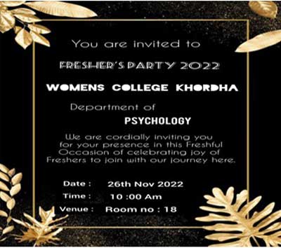 The Department of Psychology was founded in the then Women's College Khordha by MRS.Tanushree Biswal in 1981 with the creation of intermediate in Arts classes. Then it is converted into +2 Arts college during the session 1983-84. After that the college stepped into Bachelor Degree in psychology during the session 1997-88. Honours in psychology opened in 2004-05. Currently the Department runs UG (Honours& Elective) Programmes.